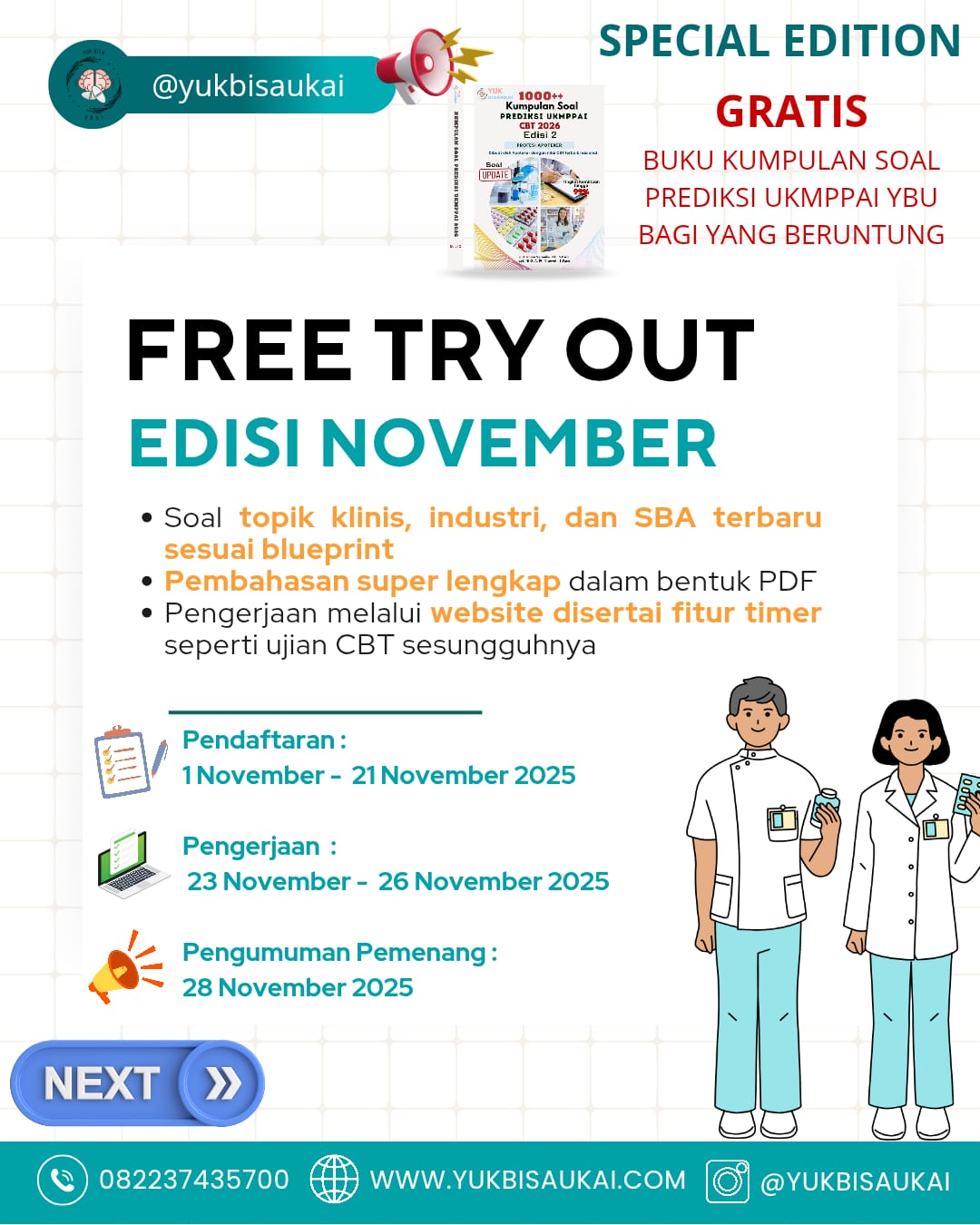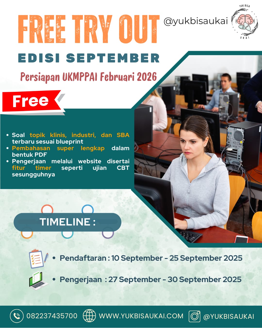 FREE TRY OUT YUKBISAUKAI terdiri dari 50 soal dengan waktu pengerjaan selama 50 menit.